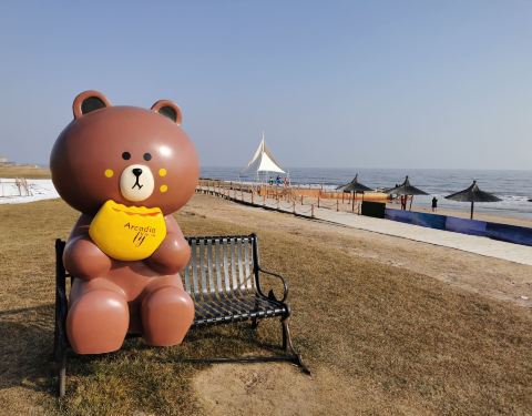 酒店在黄金海岸线上,旁边就是阿那亚社区和滑沙,离沙雕公园和渔岛也不远