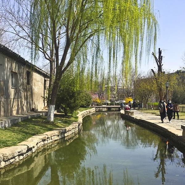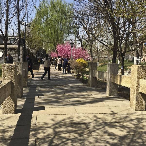 今春不能外出旅游,北京市内便让我游得格外仔细。 今天要到访的是三里河公园,吸引我前来的是优雅的咖啡书屋,想着春暖花开时节,咖啡屋也许会外设座位,那就坐下来喝杯久违的现磨咖啡满足一下自已吧。 大栅栏站下车向前一点,便见到了一个花红柳绿的小巷入口,不少人在刷健康码入内,哦,这就到了,本以为就是一个胡同内的街心花园,没想到是眼前这么漂亮的地方。景点就在鲜鱼口街南面,这里本是一片老胡同,砖墙古朴的四合院还在,小巷的路面都用石条铺就,两侧的老房屋也是比去年游览的八大胡同整齐很多,老北京时期分布在胡同中还有不少各地会馆,是一片旧时较有名气的地方。先沿着长巷头条、二条、三条逛了胡同,虽然那些会馆大门紧闭,有的只是门前的牌子,有的已改做它用,但仅是这么整齐的胡同,以及脚下的石板就让走在上面怀旧的人非常舒服了。转完了胡同便信步来到小河边,遗憾地发现那个咖啡书屋今天没开门。再来打量周围的优美环境,原来这三里河公园就是沿胡同中的小河修建而得。小河弯延有致,一座座仿古小石桥点缀河上,两岸榆叶梅开得正艳,清悠河水中游动着一群群锦锂,当我看到还有两只黑天鹅时真是被惊到了。没想到这么一个胡同中的小绿地竟然这般神奇模样!虽然今天的目的地没有如愿,但却是让我兴趣昂然地享受了这般美好。沿着小河走个来回,又在河边坐会儿,之后从前边的大江胡同穿出来,准备找回程车站却发现大马路西面就是刘老根大舞台,北边还有一个新修的石牌坊,里面的仿古建筑好像不错的样子。信步走进来,应该是鲜鱼口美食街南面的一片区域,全是精致的仿古建筑,大面积的精美木雕,又让我很是吃惊,但不知是疫情还是没开张,基本都是关着门,小巷里没什么人,一个店前一排的阳伞凉座,也是随便享受。又向鲜鱼口美食街方向走了走,发现了几个美食小店,不由得买了一个双皮奶和一个青团,回来坐在凉座上美美地吃了,哇!真是难得的享受呀,疫情以来出来逛公园都是自带零食和水,不敢进店吃东西,今天能在这么好的环境中美美地享受小吃,真是让我心情大好。今天出游的惊喜,让我有些意犹未尽地盘算着,那天直接再来这一片闲逛吃东西。哈哈……回程在牛街倒车又买了几样特色传统小吃,今天真是收获满满呀。路边的黄紫玉兰