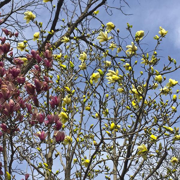 大栅栏站下车向前一点,便见到了一个花红柳绿的小巷入口,不少人在刷健康码入内,哦,这就到了,本以为就是一个胡同内的街心花园,没想到是眼前这么漂亮的地方。景点就在鲜鱼口街南面,这里本是一片老胡同,砖墙古朴的四合院还在,小巷的路面都用石条铺就,两侧的老房屋也是比去年游览的八大胡同整齐很多,老北京时期分布在胡同中还有不少各地会馆,是一片旧时较有名气的地方。先沿着长巷头条、二条、三条逛了胡同,虽然那些会馆大门紧闭,有的只是门前的牌子,有的已改做它用,但仅是这么整齐的胡同,以及脚下的石板就让走在上面怀旧的人非常舒服了。转完了胡同便信步来到小河边,遗憾地发现那个咖啡书屋今天没开门。再来打量周围的优美环境,原来这三里河公园就是沿胡同中的小河修建而得。小河弯延有致,一座座仿古小石桥点缀河上,两岸榆叶梅开得正艳,清悠河水中游动着一群群锦锂,当我看到还有两只黑天鹅时真是被惊到了。没想到这么一个胡同中的小绿地竟然这般神奇模样!虽然今天的目的地没有如愿,但却是让我兴趣昂然地享受了这般美好。沿着小河走个来回,又在河边坐会儿,之后从前边的大江胡同穿出来,准备找回程车站却发现大马路西面就是刘老根大舞台,北边还有一个新修的石牌坊,里面的仿古建筑好像不错的样子。信步走进来,应该是鲜鱼口美食街南面的一片区域,全是精致的仿古建筑,大面积的精美木雕,又让我很是吃惊,但不知是疫情还是没开张,基本都是关着门,小巷里没什么人,一个店前一排的阳伞凉座,也是随便享受。又向鲜鱼口美食街方向走了走,发现了几个美食小店,不由得买了一个双皮奶和一个青团,回来坐在凉座上美美地吃了,哇!真是难得的享受呀,疫情以来出来逛公园都是自带零食和水,不敢进店吃东西,今天能在这么好的环境中美美地享受小吃,真是让我心情大好。今天出游的惊喜,让我有些意犹未尽地盘算着,那天直接再来这一片闲逛吃东西。哈哈……回程在牛街倒车又买了几样特色传统小吃,今天真是收获满满呀。路边的黄紫玉兰 展开