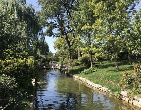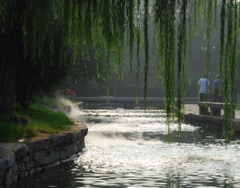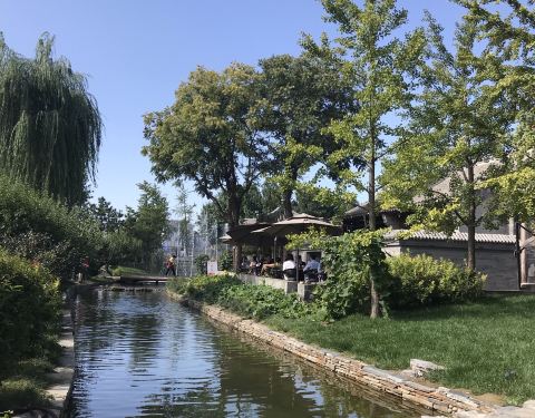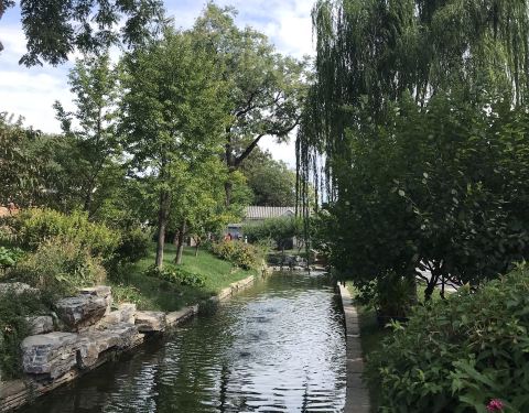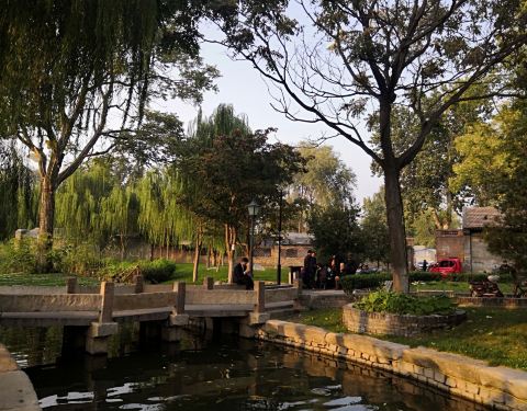 前门三里河原是老北京城护城河的泄水河道,后来成了一条臭水沟,建国初期,经过治理被改为地下暗沟,2017年经过对周边胡同的腾退改造,将暗沟修复成了明渠,并栽种花草树木,建设休闲凉亭等景观,就成了现在的三里河公园。 河水清澈见底,岸边绿树成荫,草木青翠,河里小鱼儿欢快的游来游去,仿佛走进一个袖珍的江南水乡。 周边胡同也进行了保护修缮,不少文物保护建筑,乔家银号、广西会馆、贵州会馆等,游人在行进的过程中就可以了解到前门历史中的会馆文化和独特的胡同文化。