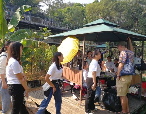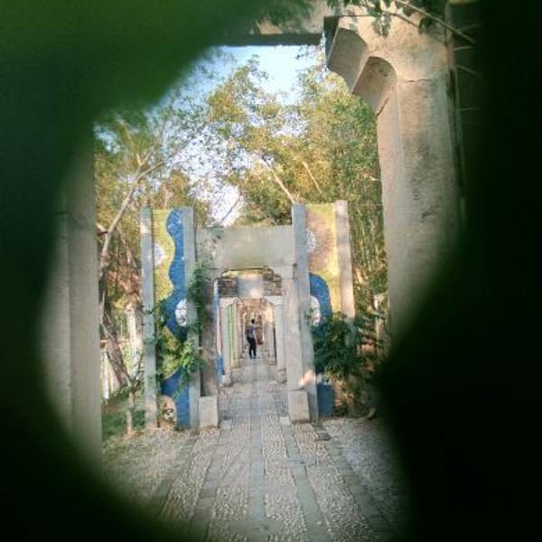 老木棉人不多,内有紫藤园、中越界河归春河、界碑等,有些比较有意思的建筑,例如百家姓,一大片门洞,两侧各有一个姓氏,而且是用超级原始的文字撰写。