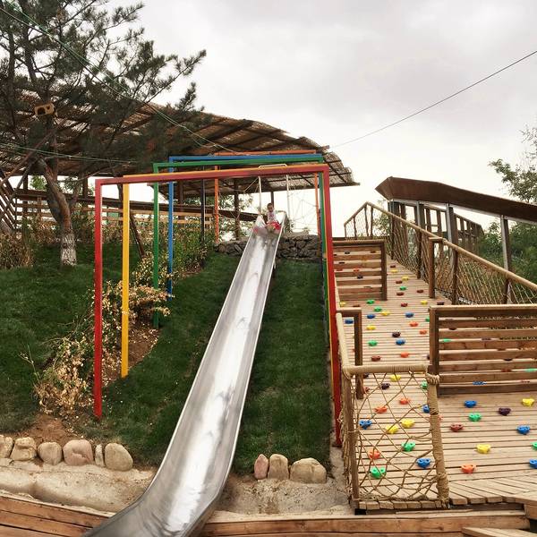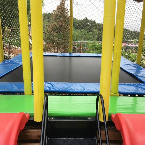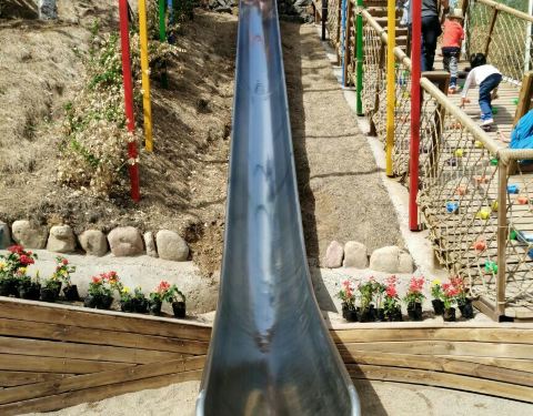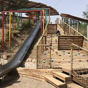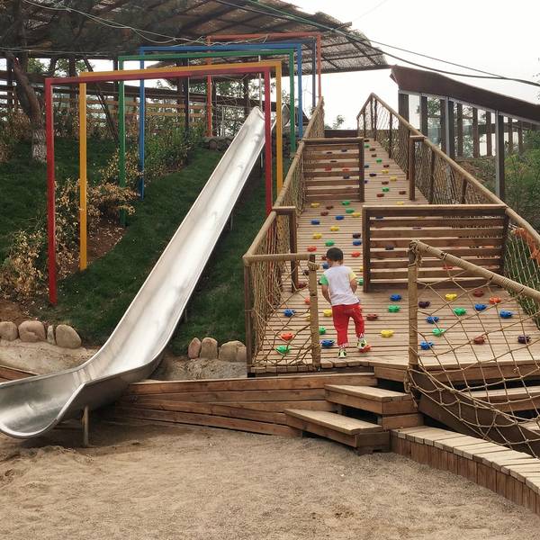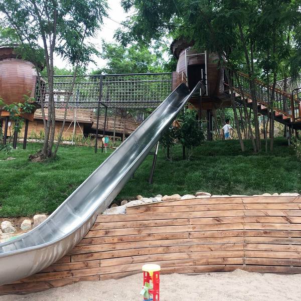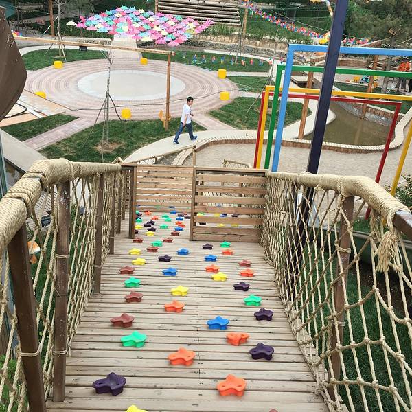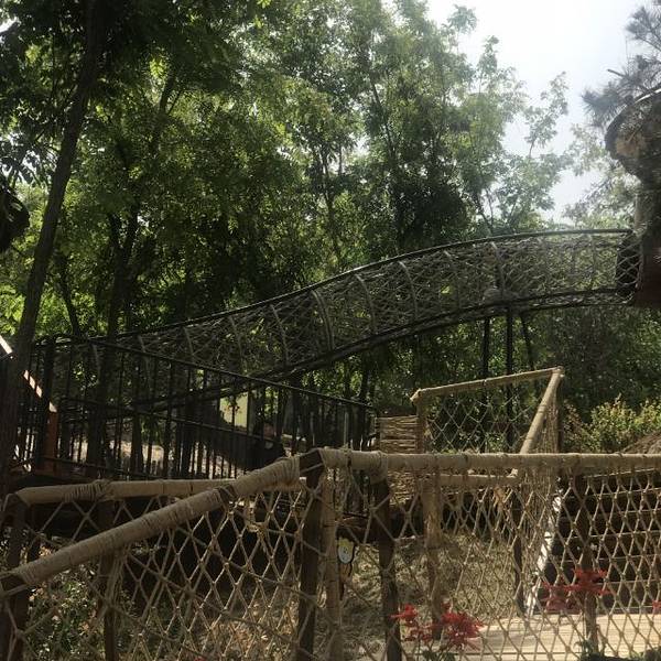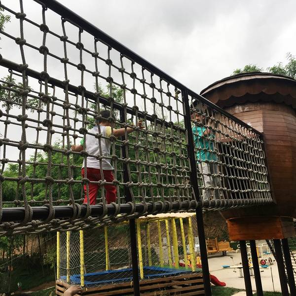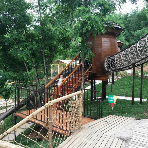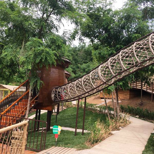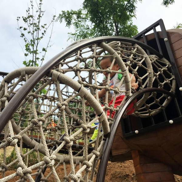 还可以到游玩区玩滑梯、平衡木,攀爬绳索、荡秋千……