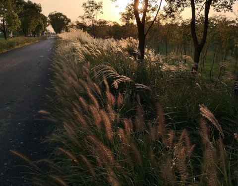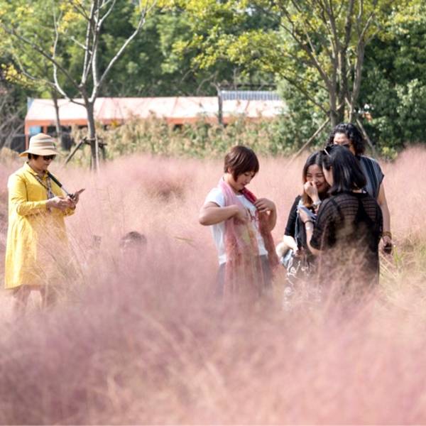 嘉北郊野公园位于嘉定区沪宜公路5051号,在嘉安公路六里桥也有个六号门可出入。大概园区总共6个门吧。配套建设最好的应该是一号门区域。来的时候是从6号门开始的,门票免费,在门口领一张票刷码即可进入。进门有个详细区域分布介绍图,沿6号门北行有个葡萄园,不过现在已过了葡萄🍇成熟时,再不远处旁边有一片粉黛乱子草或者又是知风草在盛开!粉色花线随风摇摆!是拍照取景的好地方!这里也有类似农家乐的餐馆酒店之类的配套。园内有小桥流水,有阡陌纵横,有稻田花海,有游人如织!虽已是晚秋,还是一片生机勃勃的景象!稻田里,花丛中不时有拍照流连忘返的人们!