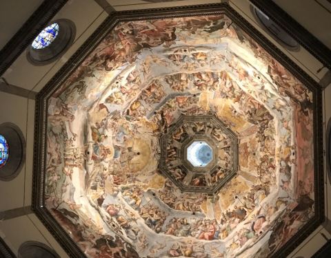 佛罗伦萨的最著名的圣母百花大教堂的穹顶,外观上非常的漂亮,里面的壁画也十分的精美绝伦佛罗伦萨的最著名的圣母百花大教堂的穹顶,外观上非常的漂亮,里面的壁画也十分的精美绝伦。可以登顶上到教堂的穹顶,俯瞰整个佛罗伦萨市中心。通常要排队还需要一定的体力爬上顶部。
