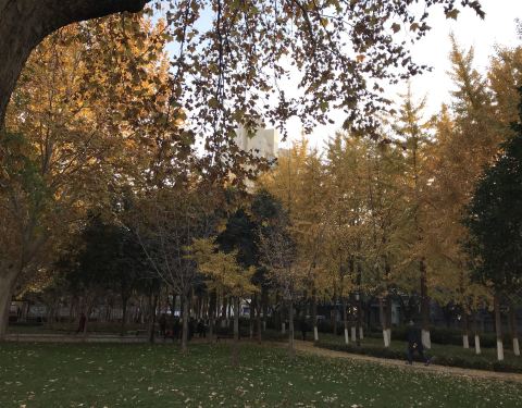 博物馆旁边的一个小公园,但是景色是很好的,有一片银杏树,扇形环绕当中,银杏开的正当时,很多游人在里面拍照。 虽然是一个免费的公园,却成了这次郑州之行比较好的回忆,反倒是周围的博物馆中的装修一点意思都没有。