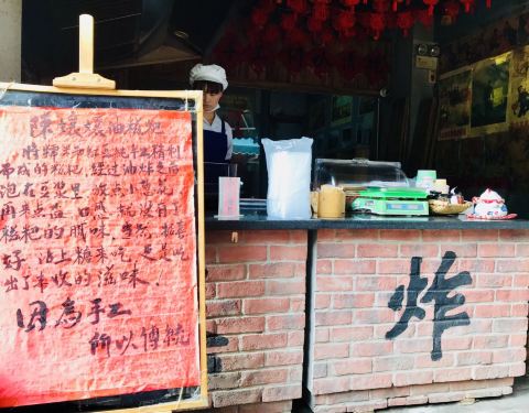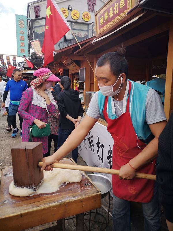 调糕藕粉,和摊主聊了几句,他介绍他们家三代都做这个小吃,现在做的人越来越少了,因为工序繁复,利润很少西山回程大巴下客点附近,就有这么一条热闹的小吃街。从头到尾逛了一下,规模不算小,各种云南美食,炸洋芋饼、牛肉串烤鱼串、豆腐,油糍粑……一边走一边觉得实在有太多选择…… 最后尝试了炸洋芋饼、牦牛牛肉串...西山回程大巴下客点附近,就有这么一条热闹的小吃街。从头到尾逛了一下,规模不算小,各种云南美食,炸洋芋饼、牛肉串烤鱼串、豆腐,油糍粑……一边走一边觉得实在有太多选择…… 最后尝试了炸洋芋饼、牦牛牛肉串、手工油炸糍粑,牛肉串的调料加️太猛,好咸,其他2样云南油炸小吃都不错。 给我留下印象比较深的是花街入口处的一个小摊子,调糕藕粉,和摊主聊了几句,他介绍他们家三代都做这个小吃,现在做的人越来越少了,因为工序繁复,利润很少。他麻利地做了一份给我,看我急急离开,还特地在后面大声提醒我要趁热吃,不要放凉了。 上车后趁热吃,把糕点在藕粉中调开,配合着瓜子仁等各种配料,不甜腻,口感很不错啊。 展开
