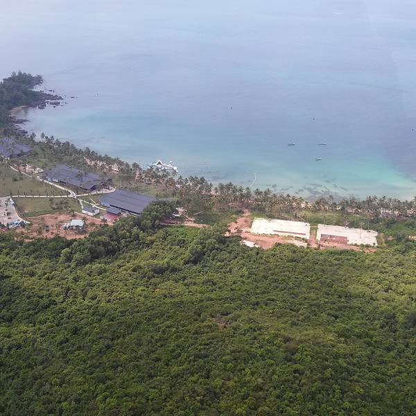 从缆车俯瞰富国岛,海岛美景尽收眼底。香岛位于富国岛以南,沙滩雪白细腻,大海蔚蓝澄净