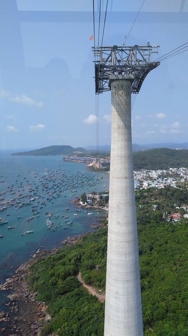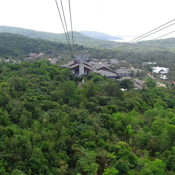香岛位于富国岛以南,沙滩雪白细腻,大海蔚蓝澄净。香岛缆车是全球最长的跨海岛缆车,一个缆车能坐20人左右,时长约25分钟。从缆车俯瞰富国岛,海岛美景尽收眼底。