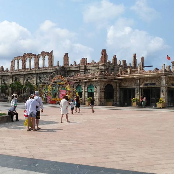 之前并没有去过越南,这是第1次来到越南,也是第1次到越南的景点旅游,仅仅是香岛这个景点,就让我深深的热爱上了这个国家。美术的细节设计的都是非常的棒,从一进入售票大厅就有乐队在这里进行欢迎,而且都是颜值非常高的美女和帅哥,不得不提一下他们的售票大厅,做的是复古的建筑,像是一个未完成的建筑,也像是一个被战争摧毁的建筑,这让我还没有进入景点,就深深的爱上了他。