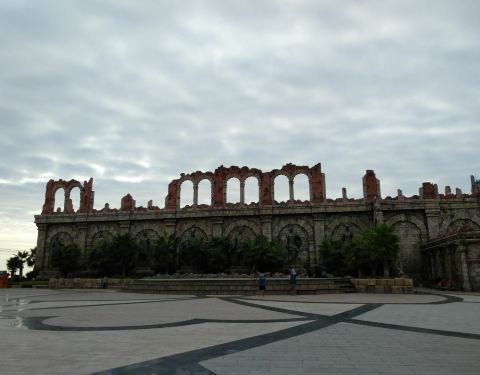 不得不提一下他们的售票大厅,做的是复古的建筑,像是一个未完成的建筑,也像是一个被战争摧毁的建筑...