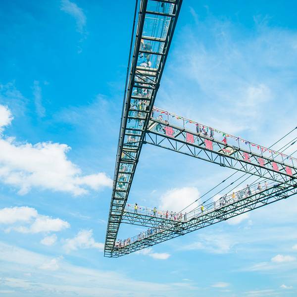 ...道,天空悬廊的刺激更在于四周悬空,让人的内心没有支撑点,内心不够强大的人,是挑战不了这一项目的进入高空项目区,首先映入眼帘的就是天空悬廊,一个巨大的“A”字型玻璃廊桥高耸的伫立在那里,桥上人来人往,悬挑支出长度近70米,被吉尼斯世界纪录认证为“世界最长的玻璃廊桥”。来到天空悬廊,可以看到吉尼斯...进入高空项目区,首先映入眼帘的就是天空悬廊,一个巨大的“A”字型玻璃廊桥高耸的伫立在那里,桥上人来人往,悬挑支出长度近70米,被吉尼斯世界纪录认证为“世界最长的玻璃廊桥”。来到天空悬廊,可以看到吉尼斯世界记录的认证碑,上面有吉尼斯世界纪录的认证书。在奥陶纪所有的玻璃项目均需要穿戴特制的防滑鞋套,全方位保护人身安全。走在廊桥上,有一种“人在走,廊在抖”的恐怖体验。全透明的玻璃让人步步惊心,走在上面大概脑海中会浮现出各种各样电影中意外的场面吧,玻璃结实不?绳子会断不?前面那个大哥你可千万别蹦跶啊!越是往端头上走,越是感觉抖动、晃动明显!风也越大!凌空感也越强烈!在蓝天白云间,极目远眺,连绵群山、苍茫大地一览无余,尤为壮观!这是最近在抖音上火到爆的奥陶纪高空项目之一,也是最能激发人性弱点的一个项目,相比玻璃栈道,天空悬廊的刺激更在于四周悬空,让人的内心没有支撑点,内心不够强大的人,是挑战不了这一项目的。这座桥没有桥墩赤裸裸的悬在空中脚下是悬崖,万丈深渊透过玻璃往下看难免还是会秒怂啊!每次只允许30个人同时在桥上对于有点月半月半的小伙伴来说,是不是还要减了肥才能去啊?一旦你克服心里的恐惧望向远方的风景,难免会被这里的山、这里的云、这里的瀑布、这里的梯田所迷醉。悬廊悬空近70米,可以看到不少人因为害怕不敢迈步,在入口处看到一个大男孩被朋友生拉硬拽的往廊上走,内心真的是怕极了吧,不过走一趟下来,这胆量应该是足够他挑战其他项目了。在旁边拍照的时候,竟然看到有小朋友牵着爸爸妈妈的手特别开心的走在上面,一点都不害怕的样子,果然初生牛犊啥不怕,作为老阿姨的我内心给你点个赞!有人伏在桥面,有人颤颤巍巍,有人被人生拉硬拽,总之这就是一副众乐乐的场面。这里还要重点说明下,天空悬廊是10个项目中不用排长队的两个项目中的一个。 展开