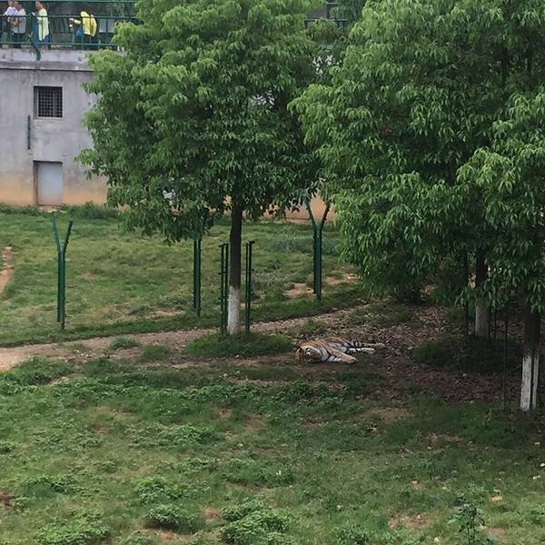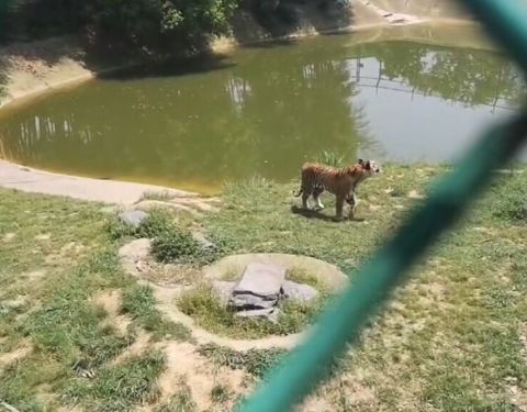 60多只老虎的虎园景色不错,风景宜人,感觉非常不错,虽然隔着防护网,但是还是看得非常的清楚,趣味性强,很开心,不错的选择。