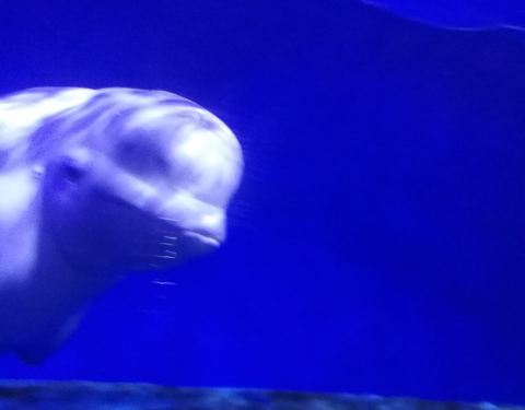 刺鼻味道有点大,最喜欢白鲸,很可爱,10几岁了,很聪明,喜欢向人吐水,美人鱼游泳很没意思,几个老外游来游去。