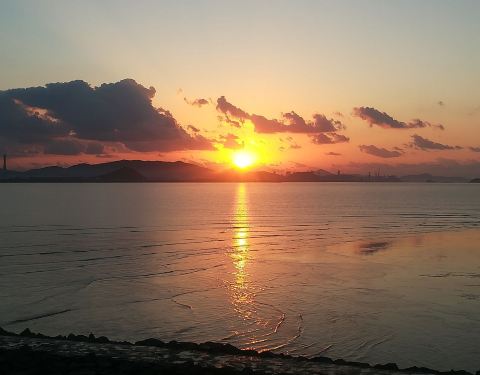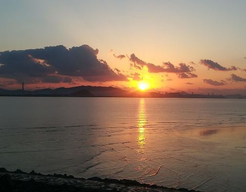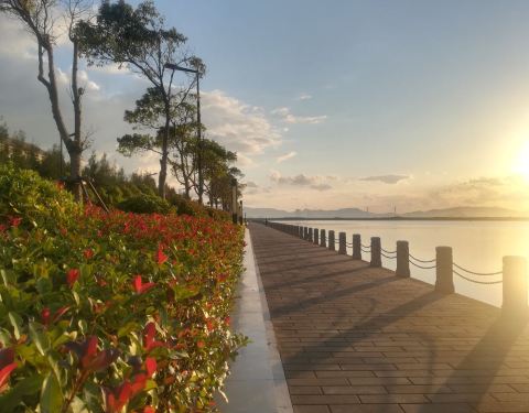 清晨,清净,湖面波光,海面涟漪,日出远山...