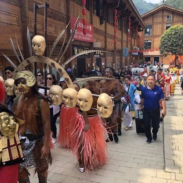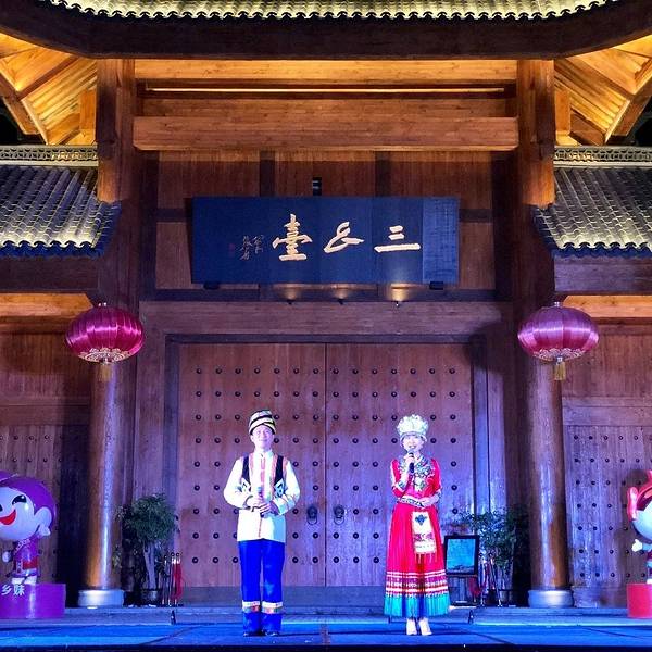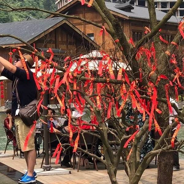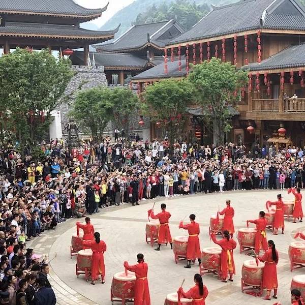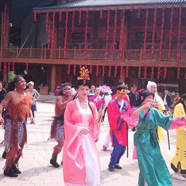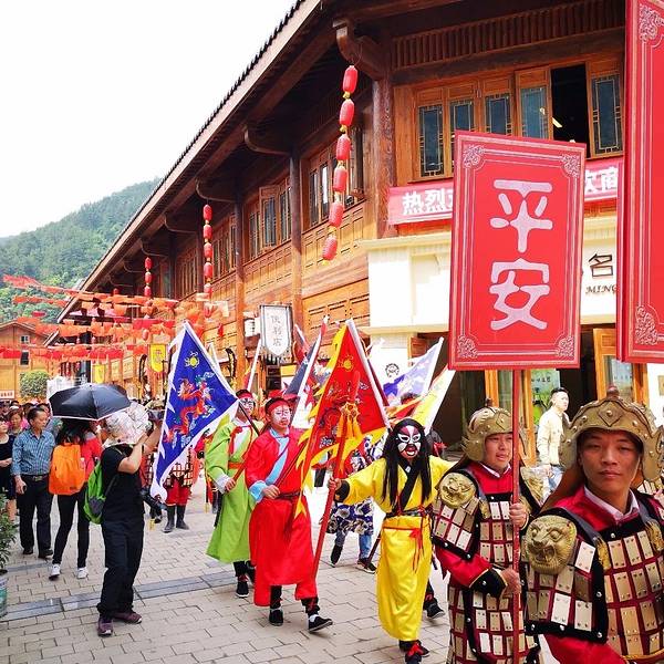 从重庆出发,上午九点多钟就到了,早就听说了他们每天的9:28分有个开门仪式,我们到来的时间还是比较的准。人太多了,挤都挤不进去,只能站在边边上看了!只能附上一张以前朋友去看的时候的照片,可惜了自己没有拍到。还好我聪明爬到楼上去拍的,这个表演也是在9:28,前面一个表演完了就是这个,人真的是太多了。在给大家看一张景区里面人多的照片,真的是巨多的人。这几张是他们景区每个广场的活动:简直是一群妖魔鬼怪跳着各种舞蹈,但是还是多有意思的!哈哈哈哈哈哈这是在寿广场的挂福袋活动,自己也去挂了一个,但是这个人不是我哦!听说他们这边有个哭嫁的习俗,虽然没有看到,但是照了一张他们这里新娘子的照片,下面附上她的证明照!是不是很漂亮呢!山王巡游下面的几张是他们晚上在三幺台的一个耕火晚会:因为晚上要回去,所以就没有看到最后的耕火晚会了,前面的表演还是多有意思的,总体来说这次游玩还是很满意,以后还会在来的。