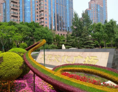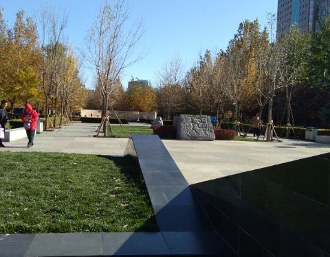 位于北京四环路以北的炎黄艺术馆北部是一块绿地,这里北边是阳光广场,南边是炎黄艺术馆,中间的绿地就是大屯文化广场,也是老百姓休息的地方。
