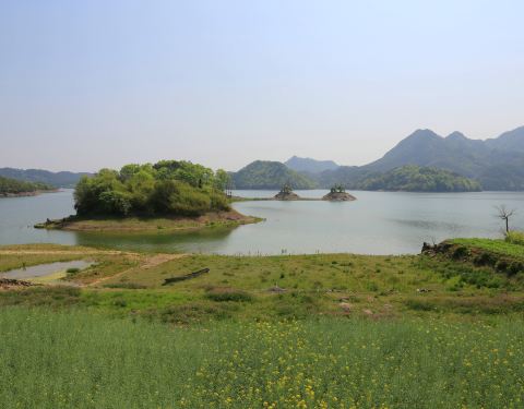 通济湖也称通济桥水库,现已成为一旅游景点。位于浙江省浦江县城西3公里处,浦阳江上游。 景区面积6平方公里,库容量5800万立方米,水域面积5平方公里。湖中有岛屿6个,半岛数十,景点10余处,有“百岛湖”之称。济湖(通济桥水库),库容量5800万立方米,水域面积5平方公里。湖中有岛屿6个,半岛数十,风景旖丽,有“百岛湖”之称。湖北茅坪山之北麓有近代著名画家吴之墓(公元1900-1977年),吴之诗书画印俱佳,为“浙江画派”承前启后重要人物。湖南有四金山,旧说金木火土皆具于此,自宋朝以来,文风鼎盛,名人辈出。清代及其以前、有名震东南之月泉吟社的吴谓。岩顶地平坦,西南有东岩寺。登上岩顶可望水库全景;东北可看浦阳全城。水库坝下,杨田村村头,有一株古樟,树龄1380余年,胸径3米,高7米,冠帽千余平方米,华盖幔帐,邑称“大树王”。