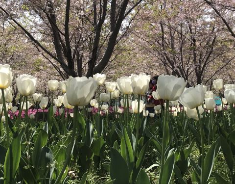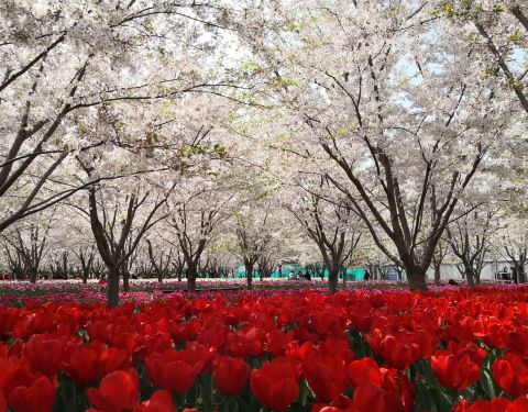 去的靠近世博的琴键春园,也算黄浦滨江的一部分种了很多樱花树,可惜去的时候已经开始长绿叶了,不然应该更美。惊喜的是树下还种了很多郁金香,各种颜色的都有。 只是离地铁站稍远,可以搭配共享单车前往。就在江边,天气好的时候沿着黄浦江走一走也很不错