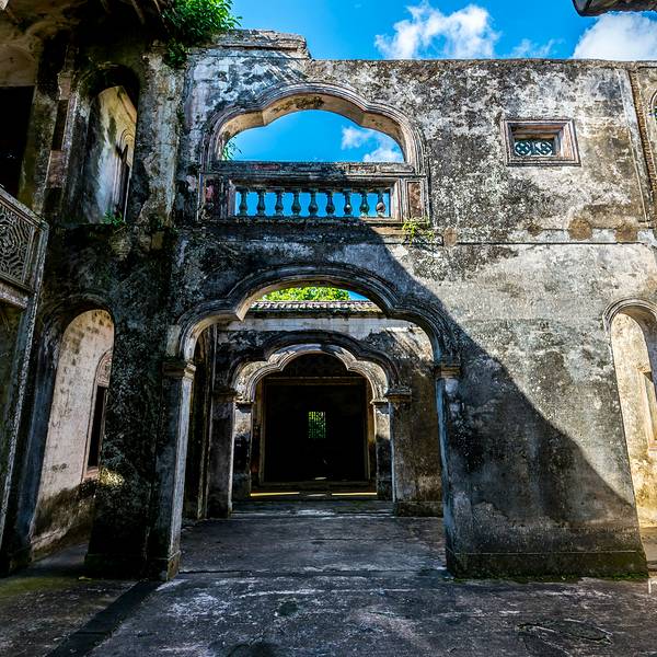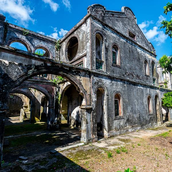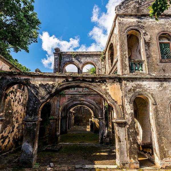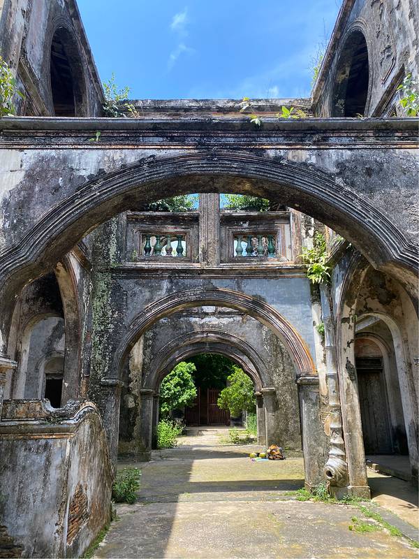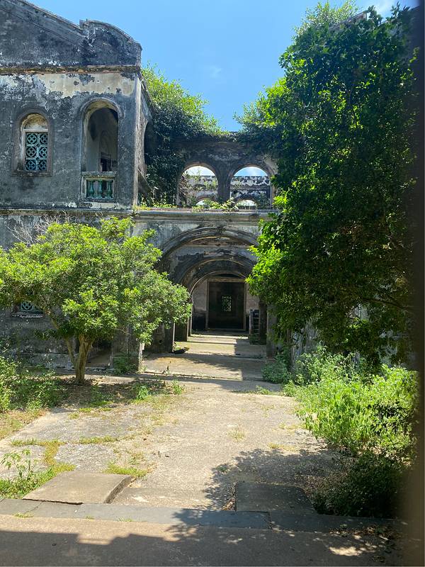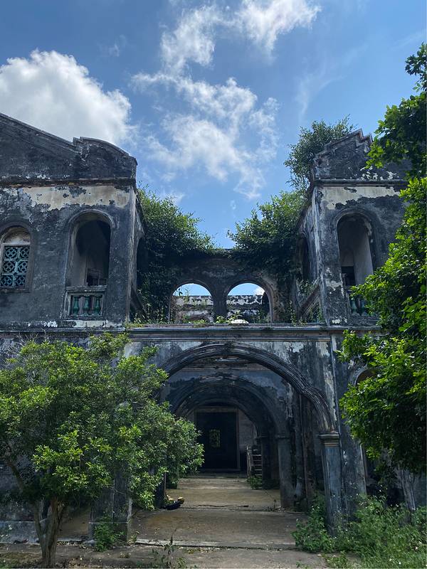 符家宅是一处很冷门的景点,在网上看到它的照片时就想着一定要去,一栋海南省现存难得的,既有海南琼北地区乡村民宅建筑特点,又有南洋骑楼文化风格的中西合璧式的百年老宅。这座大宅深藏于文昌市头苑镇松树下村,又称松树大屋,符家宅始建于1915年,规模宏大,占地面积约1300平方米,由3栋连体2层瓦顶房和8间横屋组成,共有34个房间,是海南比较传统的三进单横屋式。据说是二十世纪初符氏三兄弟一起在新加坡经商,发家后,1915年符永秩回乡,用当地烧制的火砖和泰国进口的坤旬木为材料,聘请能工巧匠建造符家宅,即保留了家乡当地的房屋特色,又大胆的融入了南洋风格,留给后人这座中西完美的精美之作。整个建筑已经斑驳破旧,处处都是岁月留下的痕迹,满满的沧桑感。现在的符家宅有后人在看管,我们到的时候正好有人进入拍摄,不知平时是否开放。也不知以后它是会被修缮,还是继续这样破败下去。