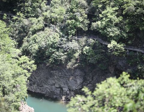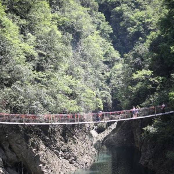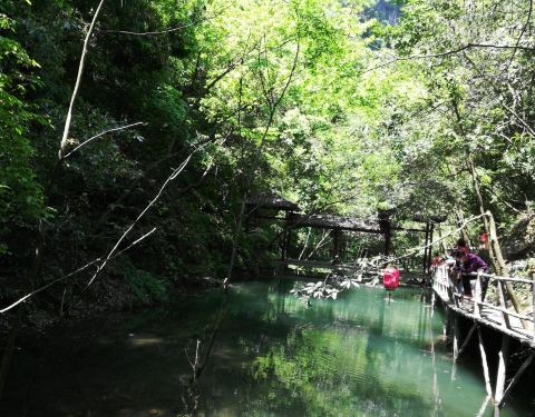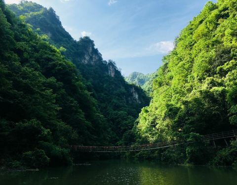 山清水秀,景色宜人,急流浅滩,潺潺流水,绝壁栈道,树上木屋,各种美景展示出了原始自然的旖旎风光