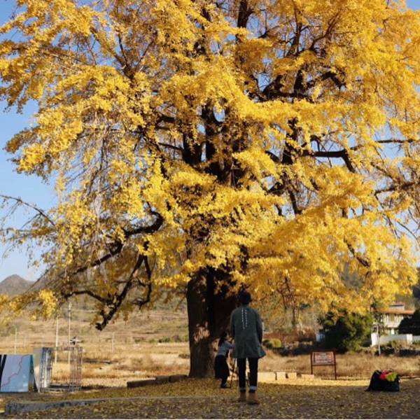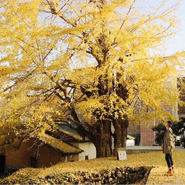 每年的11月份都是观赏银杏的最佳时节。罗汉村作为低调的小众景点,有十八棵银杏树树龄均在千年以上,树根盘结,树干需两三人才能围而抱之,姿态婆娑直冲云霄,当地人称为“十八罗汉”。