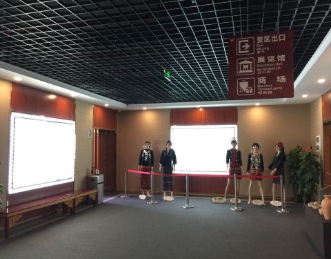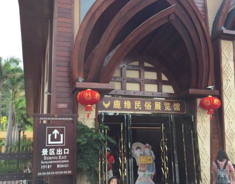 展览馆在鹿回头景区里面,靠近散客购票大门,实际上是景区的出口,也是游客必经之路,迫使游客在出来的时候在里面转圈,逛完所有的铺位,里面二楼展点文化,楼下全部是卖东西!
