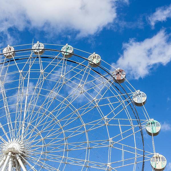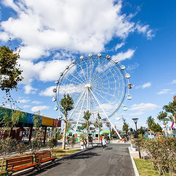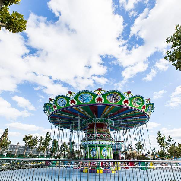 我们逛完代表性的人文景点丁氏故宅,接着再去另一个景点龙口动植物园看看。龙口动植物园总占地约300亩,主要规划建设四大功能区:动物园区;游乐园区;青少年教育园区;生态植物园区;以及其他综合服务配套设施。到达动植物园时,我们这些大孩子就先被以摩天轮为代表的娱乐设施所吸引,迫不及待地想坐坐那个坐过无数次还想要坐的摩天轮。娱乐区主要有摩天轮、自控飞机、大摆锤、滑行龙等。在摩天轮上听着呼呼的风声,拿起相机,也来个时下比较流行的航拍,但这次是真人升空航拍,拍下美丽的动植物园,没用“小飞机”的我时时过把航拍瘾。动物园区因为建成不久的缘故,还真是走在时代前列,蛮高大上的,主要以熊猫、老虎、大象、斑马、长颈鹿等高端动物观赏为主。如果带孩子来这里不说是娱乐设施,就是看动物我想孩子们都会走不动步的,可爱的袋鼠站在那里一动不动,仿佛等着我们给拍照。还有这群可爱的小动物,站在一排夸张的姿势在晒太阳。可以看到狮子斑马鸵鸟等大型动物,我们在拍鸵鸟的时候都格外小心,因为工作人员介绍说,它们可是会叨人的。来动植物园的当天,虽然风有点大但是天气晴好,再加上园区里的植物,配上蓝天就感觉画面特别美好,后来才了解到这里的生态植物园区,都是以高档的银杏、白蜡、红杉、樱花、槟榔、椰子树等珍稀植物为主的,怪不得这么有颜值,拍下的画面这么美。 这里将成为烟台乃至胶东半岛地区最大的集动植物观赏、休闲游乐、青少年科普体验为一体的现代化大型动植物游乐园区。
