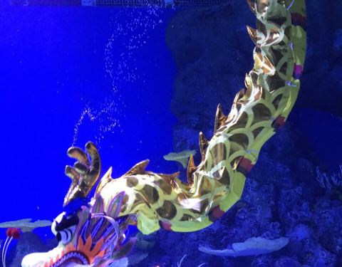 我们去的时候正好是喂鱼饲料时间,各种美丽的鱼儿围过去争抢食物,挺有意思的