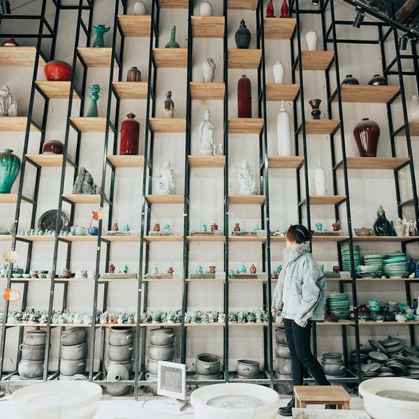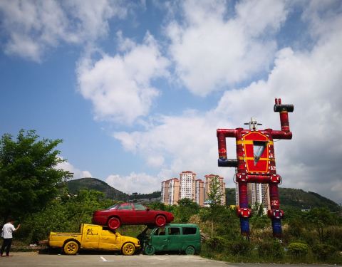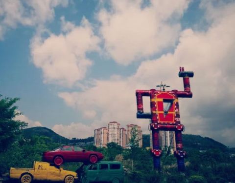 如果说,夜郎谷是宋老先生一个人的艺术狂欢,那板桥艺术村则是一群艺术家的盛宴。板桥艺术村的前身是上世纪60年代多家从祖国各地来这里支援“三线”建设国有企业的所在地,本来是贵州省粮食学校校区的它被改造而成了新一代年轻人的艺术殿堂,在无数文艺青年和创造大师的共同努力下,终于熠熠生辉。板桥艺术村大门处的“板桥号潜水艇“吸引了很多人的目光,如果没点经历的人大概永远猜不到这是由废弃的散装水泥罐改造成的。一进门就能看到的这个机器人是板桥艺术村的地标作品。它是货真价实的汽车人,全身都是利用有缺陷的汽车配件制作组装形成,创意十足,科幻大片的即视感让我对这里充满了期待。在板桥艺术村的三万平米的红砖厂房建筑中,随处可见地是各种风格的涂鸦,最有名的是巨幅的涂鸦墙,用色彩张扬着自己的态度。madhouse心理学主题民宿的墙壁上大型魔鬼笑容,文魁街街口地上的怪兽画像,攀梯上墙的牛仔少年,或是小清新,或是怪异十足,板桥艺术村里充斥着的是自由和艺术的气息。青铜器艺术也是板桥艺术村的主要元素之一,园区内四处都有各种大师所做的含义深远的雕塑作品,而在园区爬满爬山虎的老房子里,有一处“古堰青铜艺术空间”,也在默默地用自己的力量讲述着青铜艺术的魅力。冰凉的铜材、不锈钢等材料被艺术家们融入了生命的温度,或坐或立,每一件作品的背后都有自己的故事,真实地重现了人们熟悉却会被忽视的生活细节,惟妙惟肖,生动有趣。从重庆到贵州,艺术跨越地域,用青铜器连接起人们的心灵。红砖厂房看似相同,实则各有乾坤。园区内的黔行九方是陶瓷爱好者和手工迷的主场,在这里可以尽情地创作自己的陶艺作品。单纯地欣赏展架上的作品也是一件赏心悦目的事情,瓷器们散发着清冷的光芒,各具风格,等待着有缘人为他们赋予不同的生命力。板桥艺术村的面积很大,被划分为文魁街、雕刻小镇、油画山、休闲娱乐、培训机构、展览馆、艺术馆7个版块。这里另一处地标建筑是这个高耸入云的红砖烟囱,到了这里便是来了板桥艺术村的艺术交流中心。这里是字画的海洋,展览着板桥艺术村内五位驻村艺术家的书画作品,白纸黑墨间尽享大师风范。虽然作品风格各异,但都有一颗要发展和弘扬中国传统文化的赤子之心。充斥着现代艺术的板桥艺术村里,能看到这样的场合是不由得感动。来到贵州,贵州美食是不能不尝,我这次打卡了板桥艺术村内的侗家工业餐厅。它集合了园区的工业风特色和当地风情,凭借滋味十足的侗家菜肴,获得了“中国十佳黔菜馆”的称号。由旧机械厂改造而成的餐厅十分宽敞,保留了很多特色元素,“为革命而做饭”的口号,在餐厅里格外的显眼。往日吃过的一些餐厅大多是还原,相比之下,这间餐厅独特多了。侗家工业餐厅主打“真材实料,贵州味道”,用当地的新鲜食材,做地道的贵州美食,来过很多次贵州的我特别喜欢贵州菜,这里的菜品也没有让我失望,风味十足,性价比也很高。除了侗家工业餐厅,园区内还有其他花样的美食,如果选择夜宿板桥艺术村,一定要去艺术村的夜市大快朵颐一番,各式各样的烧烤一定是吃货的天堂。还有主打特色牛肉系列的雅牛坊画廊食府、以特色苹果牛肉汤为主的青瓦房。BIG BANG BAR是以陶瓷为主题的艺术清酒吧,很有情调,奈何我此次行程紧张,就留给下次的旅程体验吧。板桥艺术村的精彩远不止这些,若是要细玩起来,一两天都在这里也能乐得其所。弹古筝、学戏剧、各种演出展览,还有收藏和展出贵州少数民族特色服装及饰品的卡兰妈妈博物馆。如果要打卡到每一个景点,确实需要点时间。如果没有那么多时间深入的游览,单是四处取景,也是十分好玩,各种老旧件被改造成了多样风格,是非常适合拍照的地点。 实用攻略: 地址:贵阳市花溪区田园南路 门票:免费 交通:在花果园湿地公园乘坐210公交,板桥艺术村站下车 侗家工业餐厅 地址:园区内 营业时间:9点半-21点半 人均消费:90元 黔行九方陶艺体验: 地址:园区雕刻小镇内 体验价格:68元一次 烧制价格:40元每件