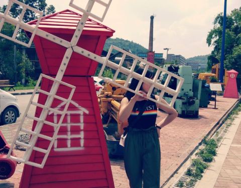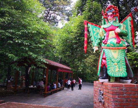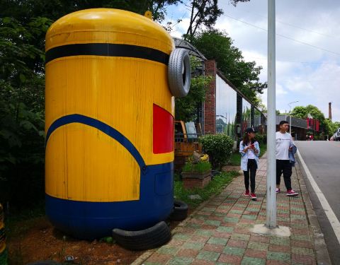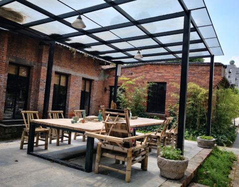 老厂房改造,里面的摆件和房子很有特点,可以在里面吃家常菜、喝东西、开卡丁车等,去的那天刚好遇到一群老年人在树荫下唱京剧,挺有意思的