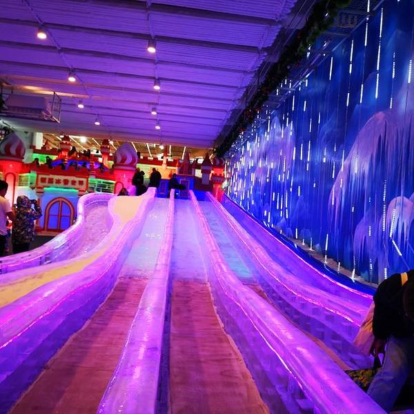 场地不大,正适合小朋友们玩,最好不要节假日去,要不然排队50分钟,玩1分钟场地不大,正适合小朋友们玩,最好不要节假日去,要不然排队50分钟,玩1分钟。 另外冰雪世界很好玩,就是很冷,带上帽子给头部保暖,因为头顶的天花板上安装的就是制冷管。