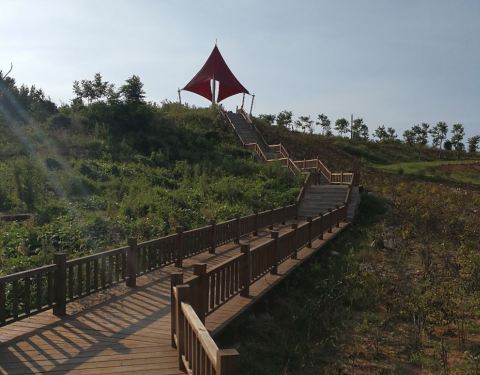 有结合黑潭、青竹,木亭,水车建成了现在的黑石公园。水墨大埝。下车步行不远就是白色造型别致的蝶梦山丘