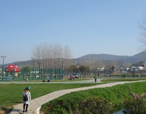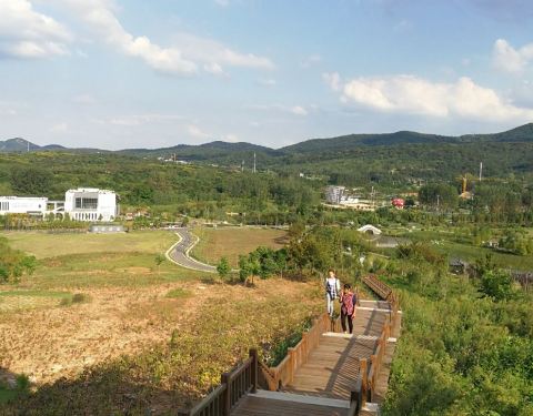 水墨大埝。从江浦镇过去4公里,道路不仅好开而且一路都很漂亮。曲线婀娜的道路在山中穿行,一个爽。下车步行不远就是白色造型别致的蝶梦山丘。拥有蝴蝶专题博物馆,地质科普馆,自行车体验馆。有结合黑潭、青竹,木亭,水车建成了现在的黑石公园。各种特色餐饮,咖啡,休闲的店铺集中在九曲水街。黎营古井,极乐庵,千年古树的历史人文景观。硕大的操场上各个体育项目自然分区,市民游客各取所需,其乐融融。