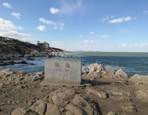 獐岛是山东烟台养马岛上的一个景点,很漂亮,是几块突起的大岩石组成的一个小岛,还有一副天然的象形...