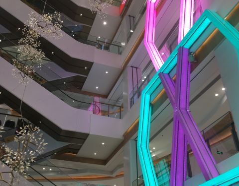 一个集休闲娱乐、餐饮与一体的大型综合性商场,挺大的,有买奢侈品、电器、超市,东西挺丰富的,晚上的灯光也很漂亮,是附近市民的一个集中玩乐的场所。