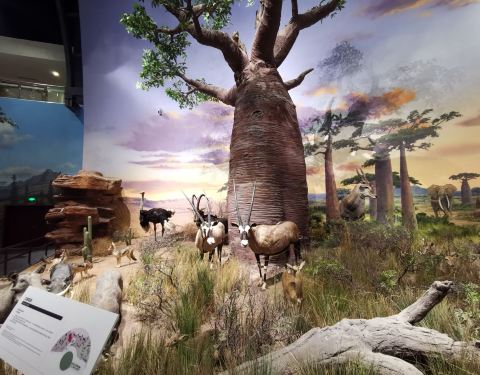 三层是苍穹展区一层为动物王国展区,根据动物的生活习性及生活轨迹来设计景观地形,将动物们原始的生活场景真实还原,且围绕“动物家园”主题,分设壮丽北美、狂野 非洲 、迷人欧亚、冰雪 北极 等多个板块。非洲 角马为什么要迁徙?又是如何进行大规模长途跋涉?开阔的北美大草原上谁是最大的捕食者?寒冷干燥的 北极 有哪些原著居民?它们为何能跨越寻常动物难以逾越的生存障碍?迷人的欧亚地区有哪些多种多样的生物?如何才能“复活”动物标本?二层采用动静结合的展示方式,静态为科普展板,动态为互动科普。作为覆盖着地球表面的四分之三的“蓝色领土”,大海是生命的摇篮,人类一直试图深入探索这个壮美而富饶的神秘世界。