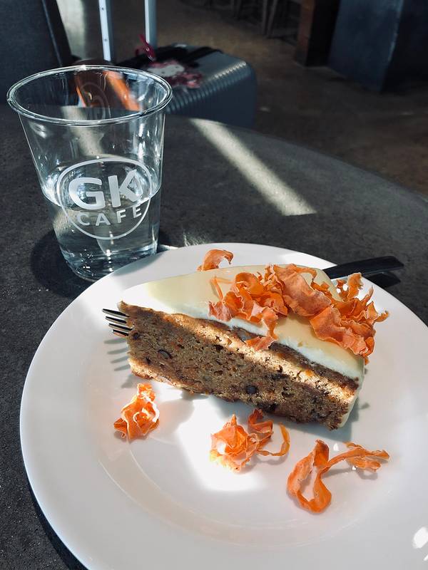 新光天地。因为要投靠的童鞋在附近工作(这时她还在上班)~自己先走走。新光天地太值得逛了!照片都拍的不好,但是尽管来,室内外的设计都非常大气。中庭一处,完全眼前一亮(照片拍的显得地方小,没有拍全)商场中间有一部分做成了室内游乐场,设计感非常强。超级心动的旋转木马。一定要亲眼看,美得多!一度想上前问,如果只有1个游客,也开吗~买跑鞋。因为福州没有实体店,所以这是本行程的一个目的。 试了一整双后,店员让我跑跑,我还真的去跑了一层~~很舒服(最后买了黄灰那个,打6折,比天猫还便宜)。此行第2个目的,吃【胡萝卜蛋糕】,恩福州没有。 在福州时搜过,重庆居然真的有家餐厅——祖母的厨房,就在新光天地。怎么说这个的重要性呢。下飞机后,和家里报备完,立马打电话先问了——今天害有胡萝卜蛋糕吗?留一块,一小时左右到!很好吃。可惜店员热过了些(原先是冻的),于是显得偏甜。如果是刚好去冰状态,一定很绝!之前做功课,重庆高峰期大面积都巨堵。因此不时在地图里刷下路况。 现在是下午17点,20分钟后就很多地方很血了~~
