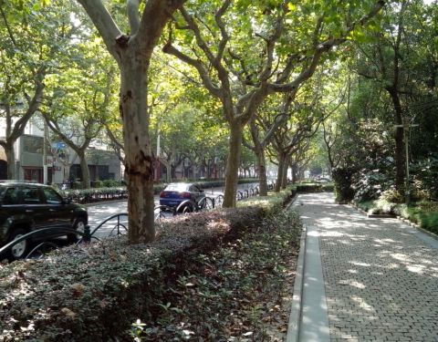法国梧桐遮蔽整条马路,两旁酒吧餐饮很多,许多外国朋友喜欢来这里玩。