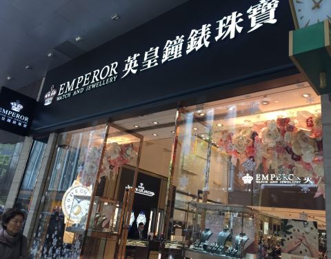 皇后大道上的这一家英皇钟表珠宝的装修,感觉要比铜锣湾的店好得多,颇有一种奢侈中的奢侈的感觉。这里的橱窗看到的是百达翡丽、劳力士和帝舵表,同时也是伯爵表的授权代理商。就在置地广场的皇后大道的对面,很大一家店,非常显眼。