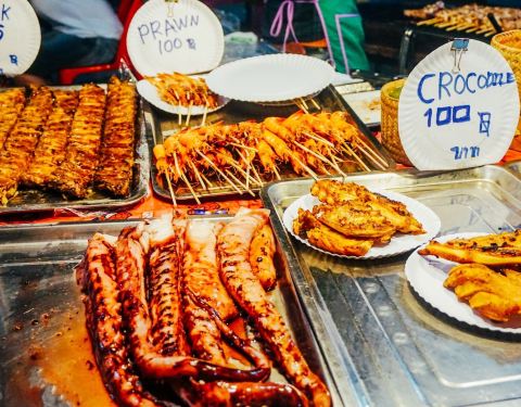 与周末集市不同,拉迈夜市每天晚上都有,不卖商品只卖美食,在这里你能找到各种泰国的平民美食,在夜市的尽头还专门摆放了桌椅给客人进餐。