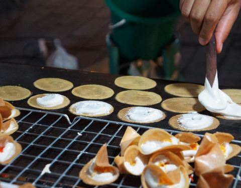 ...,一块块小小的圆形薄饼,在上面铺了cream,卷在一起,但吃了一口发现超级甜,不太符合我的口味饭后慢慢游走经过的夜市,这里有很多特色的泰国小吃购买。有很多吸引的肉串,但洋葱和肉串混合在一起,洋葱很容易会烧糊,而且也不喜欢吃洋葱的味道,比较喜欢纯肉串的。烤椰子薄饼,看上去挺吸引的,现场制作,...饭后慢慢游走经过的夜市,这里有很多特色的泰国小吃购买。有很多吸引的肉串,但洋葱和肉串混合在一起,洋葱很容易会烧糊,而且也不喜欢吃洋葱的味道,比较喜欢纯肉串的。烤椰子薄饼,看上去挺吸引的,现场制作,一块块小小的圆形薄饼,在上面铺了cream,卷在一起,但吃了一口发现超级甜,不太符合我的口味。 展开