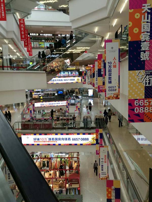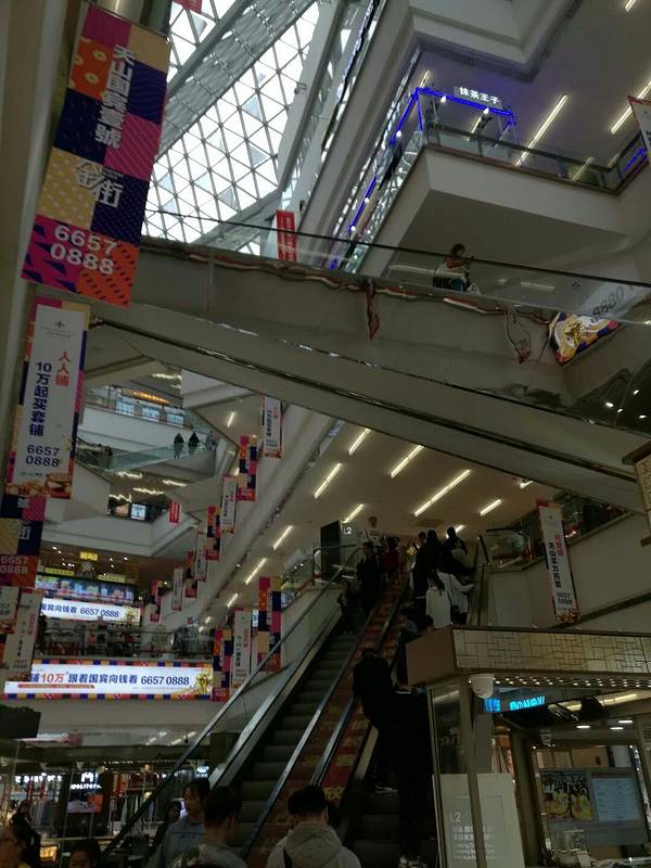 商场的位置很好,交通很便捷,地铁1号线平安大街站出口200米就是。大楼很高,1-6楼是商业区,7楼以上,是写字楼。大楼的外观很雄伟我们从1号门进去,一进门有个造型居然是活人扮演的,非常的令人新奇这个店各大国际品牌都有,布局很合理,电梯步梯非常的漂亮,大气在一楼有我喜欢的优衣库,店面很大,购物人不少,试衣间都排队等候了,我在这里买到了2条裤子,一件长袖体恤,扫码有50元的折扣。这里面还有韩国的中桥品牌,适合上班族选用四楼有餐厅,很多美食,我们在“老头油爆虾”吃的午饭,性价比挺高,人均不到40元。