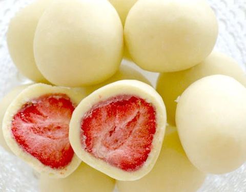 巧克力草莓夹心包装很好看,就是一颗特别大,我自己觉得还好,但是我妈妈觉得里面的冻干草莓太酸。白色的会甜一点,我买的是黑巧克力版的,蛮特别的。 - ...常好吃,尤其我把它塞在冰箱里冷藏了一会,简直像冰淇淋夹心饼干,也不像其他日系糕点一样齁甜齁甜的
