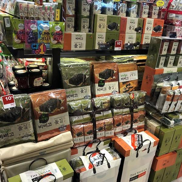 新罗免税店有好多样的必品阁海苔,还有礼盒装的,送人也有面儿