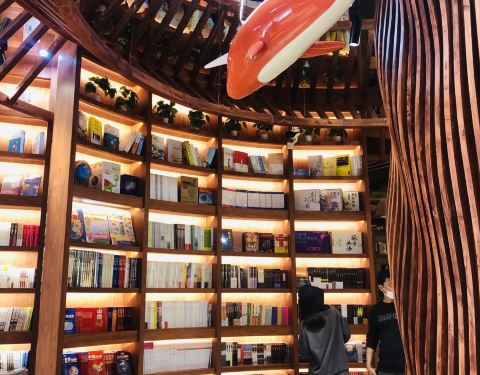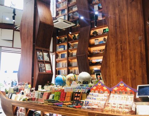 重新装修后的新华书店环境太赞了,一楼就多了好多座位,书本摆放也井井有序,入口处有艘船,摆放不少纪念品