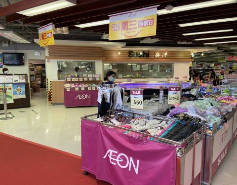 位于荔枝角碧海蓝天的永旺AEON,是永旺在九龙的旗舰店,于2011营业。从商场的正门进去,看到的是大面积的食品超市,真的很难得在香港看到如此大规模的超市,不由得有些羡慕住在附近的人。终于有种在大陆逛家乐福或是麦德龙的感觉了,而一般香港的超市差不多就是逛家得利的感觉。这家永旺的食品超市里,还进驻了八方云集、壹番屋等餐饮。