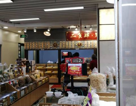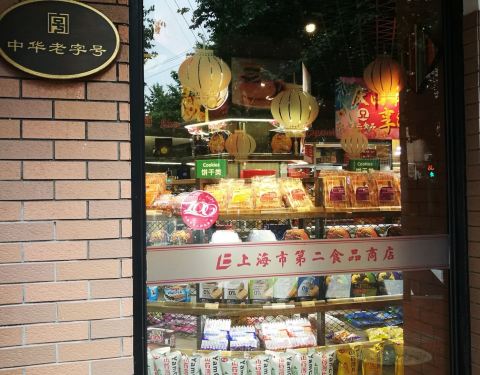 上海老字号~上海第二食品商店的连锁门店。 不大的L型店面,布置的井井有条,货架的商品琳琅满目,以销售上海的知名品牌食品饮料为主,不少回头客欢喜来熟悉的商店买熟悉的商品~品尝熟悉的口味。