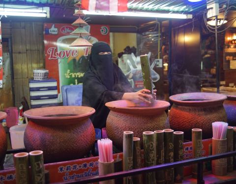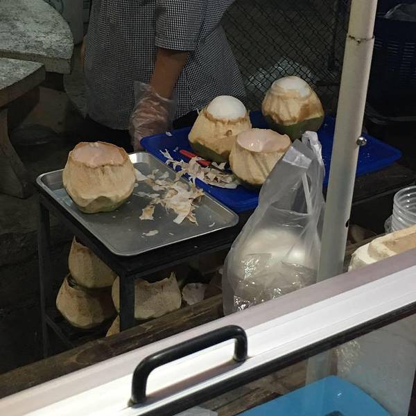 下午到的时候已经三点了,再加上去酒店check in,吃晚饭,租摩托,实际上拜县的第一天只去了以上三个景点。而第一天给我带来最难忘的是拜县的夜市,和清迈古城内的零零散散的夜市不一样,拜县由于较小,夜市也都集中在小镇中心内,所以相对清迈古城的零散,拜县的夜市反而显得热闹而富有趣味。 夜市里基本上分为酒吧、饮食店和商铺集市。消费基本上都比清迈曼谷的便宜。我在集市就淘到了七八个精美的小布袋零钱包。小镇里一家很有韵味的小清新饮品店,可以一边点东西喝一边看书聊天。夜市里有卖的一种泰国椰子。商家把椰子撬开,然后把里面的椰子肉圆球一样的剖开,样子看起来跟雪球一样。很有趣,那一晚一群人都排队吃他家的。简直赚翻了。价格也就比一般的泰国椰子贵不到五块钱而已。小镇内的马杀鸡~是个老奶奶按的。