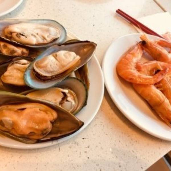 最后可以去餐厅用餐。这是个自助餐厅,而且是免费的,属于自助简餐类,但是我觉得还是挺好吃。之前有新闻中国大妈在餐厅抢大虾,其实旅行社把参团人拉过来是双赢:这都免费,旅行社不用花门票;免税店迎来了一大波顾客;游客能买东西还能吃顿饭。就是闹了个新闻挺丢人。我们去的时候没有旅行团,人不多,一些海鲜包括虾、三文鱼供应都挺充足,随便吃。其实我没觉得很好吃,虾就是煮一下。我倒是觉得炒粉不错。