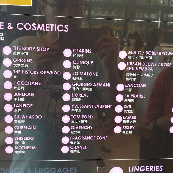 来到后需要填个单子,填一下从哪个机场走、几号走,买的东西可以直接送到机场,就不用自己背着了。进去后就直接是卖化妆品的,就走不动了,这看看那试试,因为号称有全球最便宜的欧莱雅,欧莱雅那人最多,买了一些,还买了一些倩碧,因为送了很多东西。结账时用银联白金信用卡有折扣,很合适。